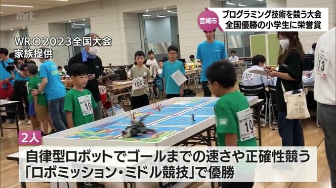 ロボットのプログラミング技術を競う全国大会で優勝 宮崎市の小学生2人のチームに「児童生徒栄誉賞」 2023年10月24日(火) 19:00 国内 ロボットのプログラミング技術を競う全国大会で、宮崎市の小学生2人のチームが優勝し、市から児童生徒栄誉賞が贈られました。宮崎市の児童生徒栄誉賞が贈られたのは、プログラミング教室「ロボ団宮崎中央校」に通…