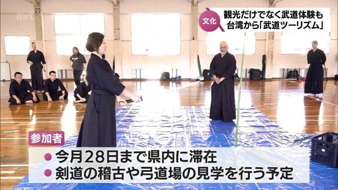観光を楽しみながら伝統的な武道も学ぶ「武道ツーリズム」 台湾の剣士たちが日向市で観光と真剣の試し切り 2023年10月25日(水) 19:00 国内 日本の伝統的な武道を生かした観光ツアー「武道ツーリズム」の話題です。台湾から訪れた剣士たちが、宮崎県日向市で観光と武道を体験しました。(廣末圭治記者)「今、武道ツーリズムの参加者たちが、ここ大御神社…