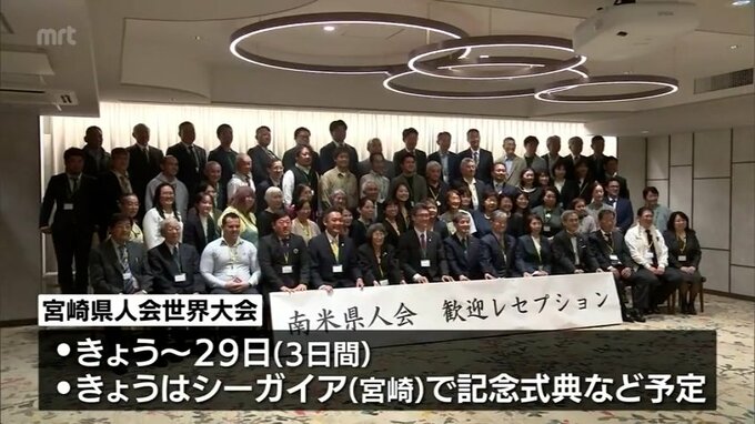 きょうから宮崎県人会世界大会 南ブラジルなど南米県人会歓迎のレセプション開催 2023年10月27日(金) 12:00 国内 27日から開かれる宮崎県人会世界大会を前にブラジルなどの南米県人会が交流を深める歓迎レセプションが昨夜開かれました。「お帰りなさい!乾杯!」これは、宮崎ブラジル親善協会が県人会世界大会に合わせ初めて開…