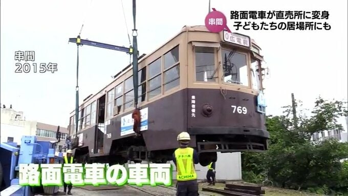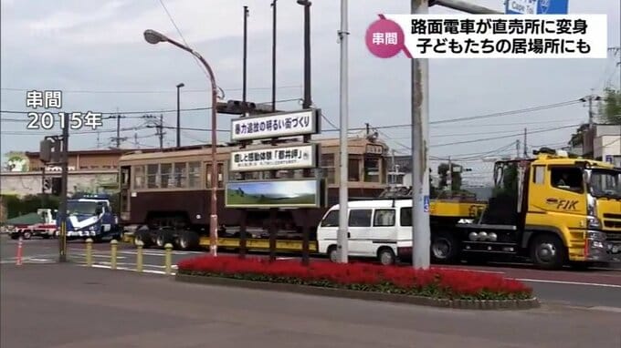 この路面電車が、27日、市民らの手により、地場産品の直売所として生まれ変わりました。