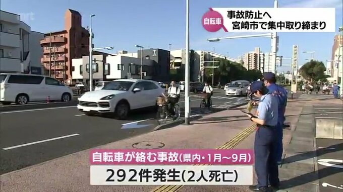 自転車事故の約6割は出会い頭 事故防止へ宮崎市で警察が「自転車の交通違反」集中取り締まり 2023年10月27日(金) 19:00 国内 暮らし・マネー 交通事故防止を図ろうと宮崎市で、警察による自転車の交通違反の集中取り締まりが行われました。(警察官の指導)「自転車の方は左側の通行になります。こちらの歩道では自転車の方は降りてください」この取り締まり…