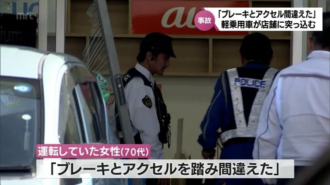 警察によりますと、軽乗用車を運転していた70代の女性は「ブレーキとアクセルを踏み間違えた」と話しているということです。