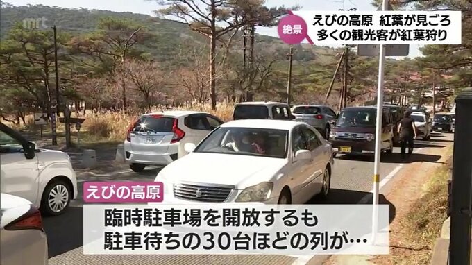 (三浦功将記者)「連休初日を迎えたえびの高原。メインの駐車場は県外ナンバーの多くの車がどっと押し寄せています」