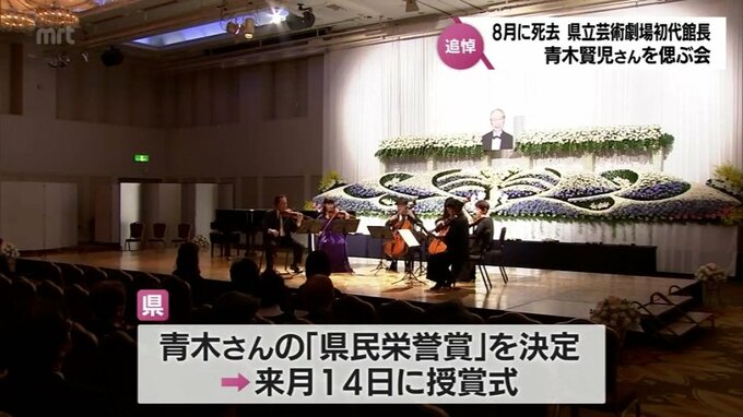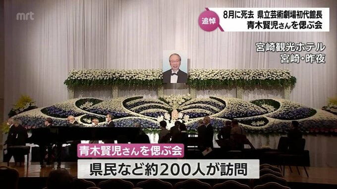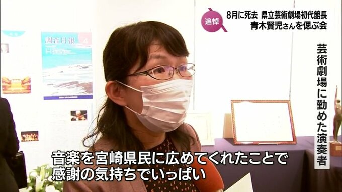 今年8月に亡くなった宮崎県立芸術劇場の初代館長、青木賢児さんを偲ぶ会が、6日、宮崎市で開かれました。