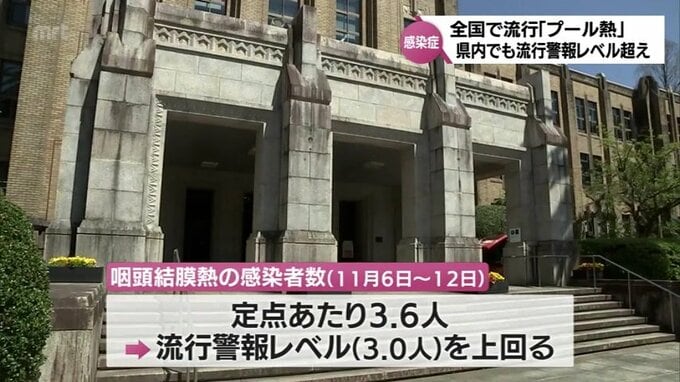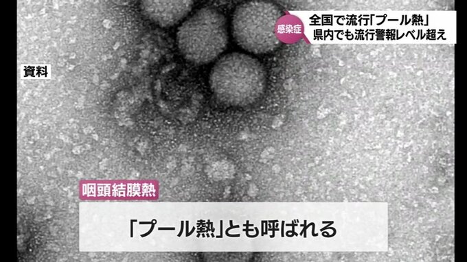 「プール熱」とも呼ばれる咽頭結膜熱(いんとうけつまつねつ)が全国的に流行するなか、宮崎県内でも流行警報レベルを超えました。