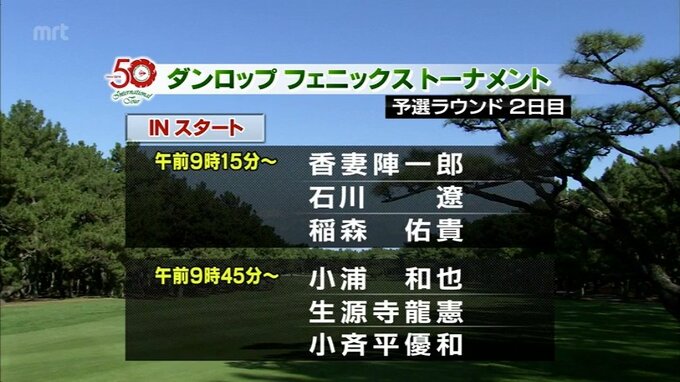 ダンロップフェニックストーナメント、予選ラウンド2日目の主なペアリングと、スタート時間です。