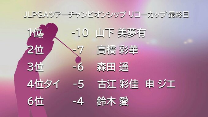 最後まで圧倒的な強さを見せつけた山下はトータル10アンダーで大会2連覇、そして2年連続の年間女王に輝きました。