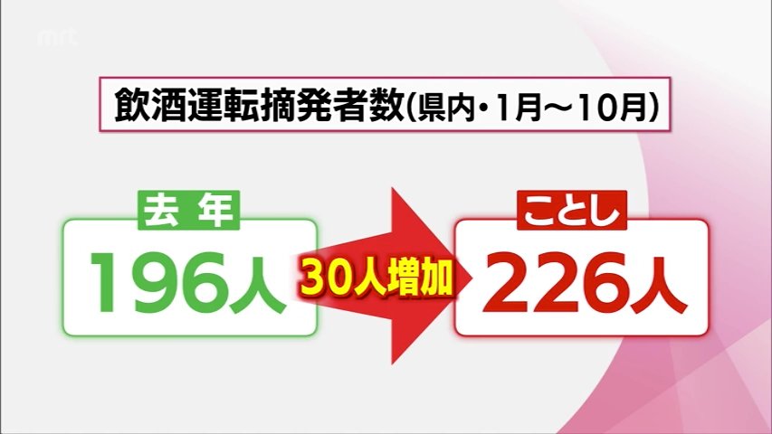 飲酒運転摘発者数 前年同時期比30人増