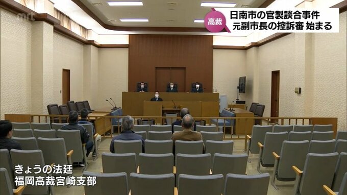 日南官製談合事件 第1回控訴審 元副市長は引き続き無罪を主張 2023年12月14日(木) 19:00 国内 おととし日南市で発覚した官製談合事件で、1審で有罪判決を受けた元副市長の裁判です。元副市長は無罪を訴えていて、福岡高裁宮崎支部で控訴審の初公判が開かれました。この裁判は、日南市発注の公共工事をめぐり…