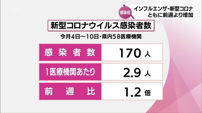 今年の冬は、例年以上にさまざまな感染症の患者数が増加しています。今月10日までの1週間に確認されたインフルエンザと新型コロナの感染者数は、ともに、前の週より増加しました。