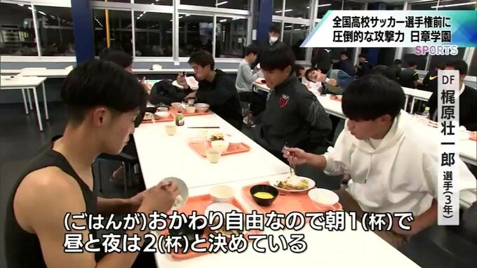「揚げ物が出た時には衣を外すようにしている。おかわり自由なので、朝1(杯)で昼と夜は2(杯)って決めている。強い体を作ったら、サッカーにつながるかなと思って続けてる」