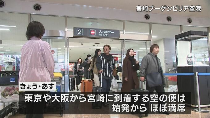 宮崎空港への帰省ラッシュ 29日にピーク迎える 2023年12月29日(金) 17:19 国内 新型コロナが5類に移行して初めての年の瀬です。年末年始をふるさとや行楽地で過ごす人たちの帰省ラッシュは、29日にピークを迎えました。航空各社によりますと、29日と30日、東京や大阪から宮崎に到着する空の便…