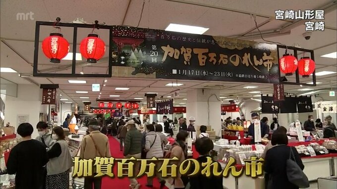 被災地を支援しようと多くの買い物客 石川県の特産品を集めた恒例「加賀百万石のれん市」 宮崎市で始まる 2024年1月17日(水) 12:00 国内 石川県の特産品を集めた恒例の物産展が宮崎市で始まり、会場には、被災地を支援しようと多くの人が訪れています。宮崎市の宮崎山形屋できょうから始まった「加賀百万石のれん市」。今回は、能登半島地震で大きな被…