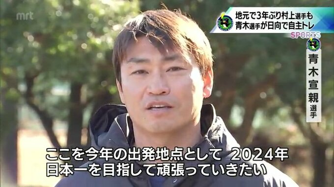 「自主トレをこうして宮崎の日向ですることができて、いい環境の中で自主トレができて、本当にうれしい。ここを今年の出発地点として、2024年日本一を目指して頑張っていきたい。応援よろしくお願いします」