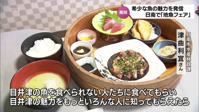 新鮮で希少な地魚を味わって 日南市南郷町で「めいつ地魚フェア」 20日から開催 2024年1月18日(木) 19:00 国内 話題・グルメ 20日から宮崎県日南市で、新鮮な魚が味わえるフェアが始まります。目井津港で水揚げされる希少な魚を味わってもらうというこのイベント。どのような料理が食べられるのでしょうか。日南市南郷町の目井津港は、多い…