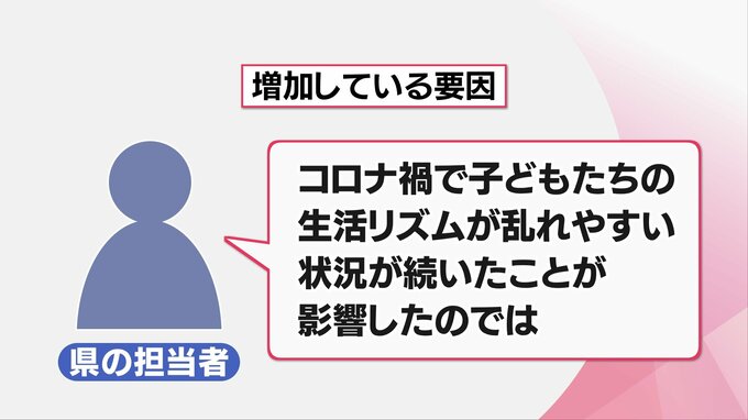 この要因について、宮崎県の担当者は「コロナ禍で子どもたちの生活リズムが乱れやすい状況が続いたことが影響しているのではないか」と話しています。