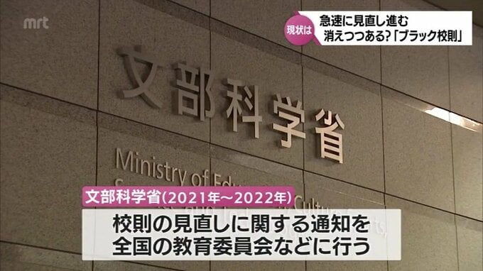 時代に合わないものや理解に苦しむような、いわゆる「ブラック校則」が近年、問題視され、文部科学省は2021年から2022年にかけて、校則の見直しに関する通知を全国の教育委員会などに行った。