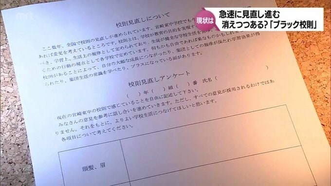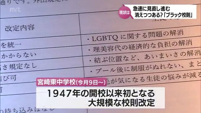 教育委員会などからの通知を受け、学校では少しずつ校則を見直してきたが、去年、全校生徒にアンケートをとり、今月に入って、1947年の開校以来初めてとなる大規模な校則の改定を行った。