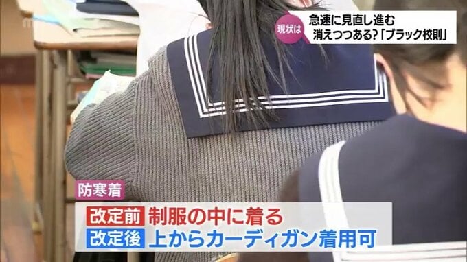 また、防寒着はこれまで制服の中に着る必要があったが、カーディガンなどを上から着用することが可能になった。