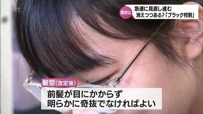 これにより、結び目の高いポニーテールやツーブロックなどが禁止されていた髪型は、髪の長さや結ぶ高さの規定がなくなり、前髪が目にかからず、明らかに奇抜でなければよいと見直された。