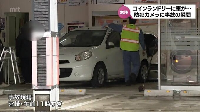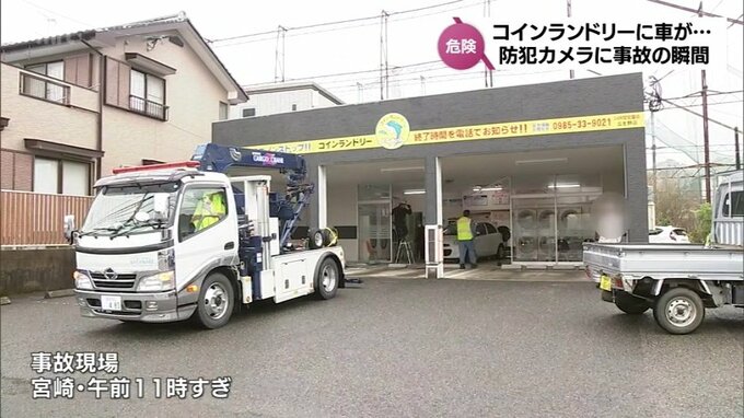 2日朝、宮崎市で、普通乗用車がコインランドリーの店内に突っ込む事故がありました。