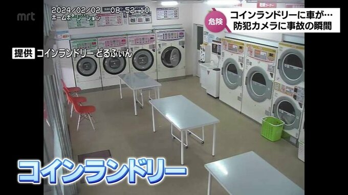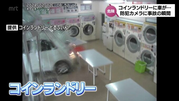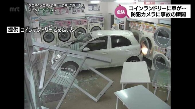 突然、車が映り込むと…店の乾燥機にバックで突っ込みました。