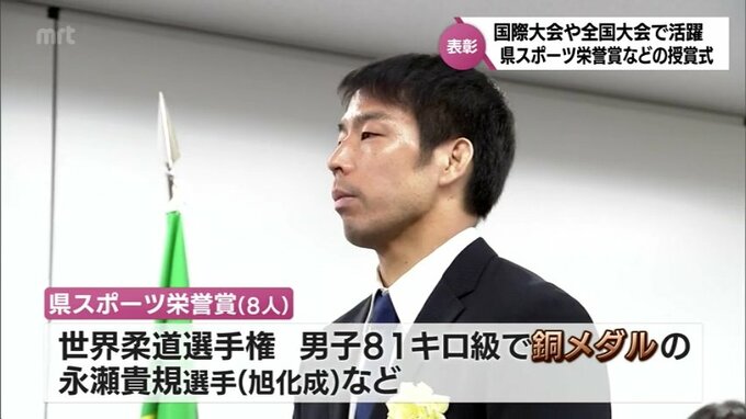 MRT SPORTS UP! 世界柔道銅メダル・永瀬貴規選手(旭化成)ら 国際大会や全国大会で活躍した選手・団体に 宮崎県スポーツ栄誉賞・特別賞の授与式 2024年2月8日(木) 19:00 国内 国際大会や全国大会で優秀な成績を収めた選手や団体を表彰する、今年度の宮崎県スポーツ栄誉賞などの授賞式が行われました。まず、国際大会で活躍した選手らに贈られる県スポーツ栄誉賞は、世界柔道選手権、男子81…