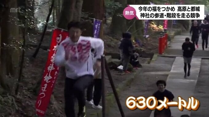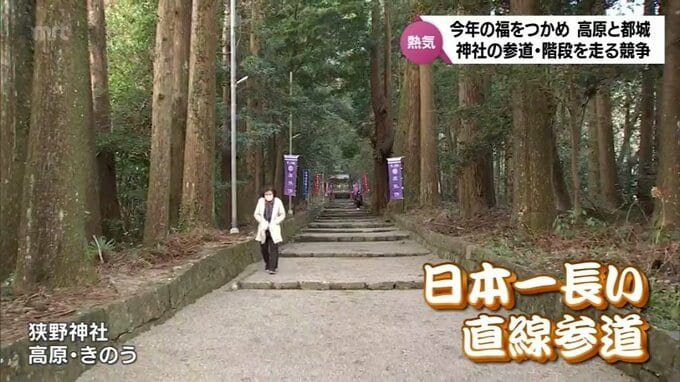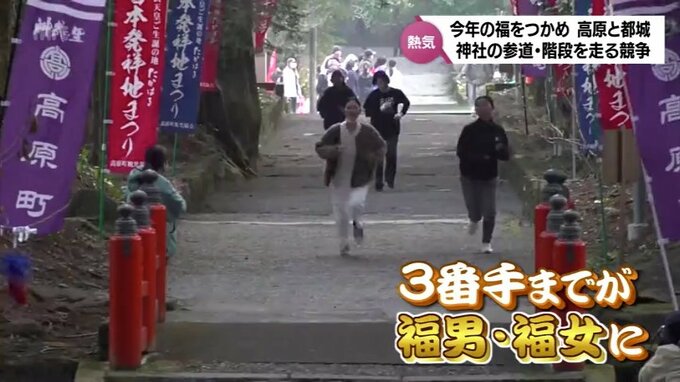 11日、高原町と都城市で神社の参道や階段を走る競争が行われ、参加者たちの熱気に包まれました。