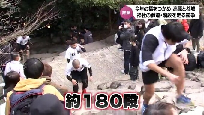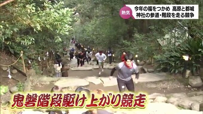 都城市高崎町の東霧島神社で開かれたのは恒例の「鬼磐階段駆け上がり競走」。