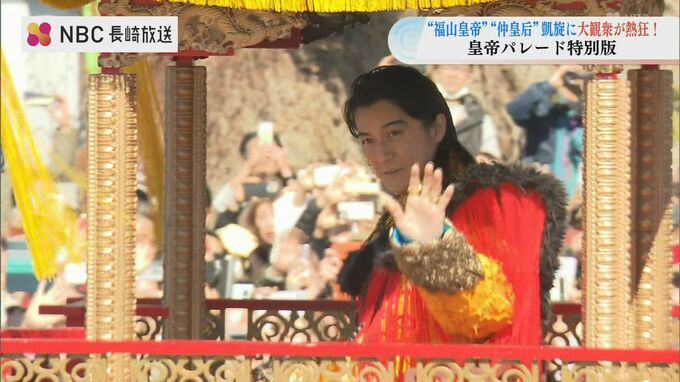 「もっと盛り上がっていただいても構いません」皇帝パレード特別版 皇帝役 福山雅治さんと皇后役 仲里依紗さん 沿道は人…人…人… 長崎ランタンフェスティバル 2024年2月19日(月) 20:19 国内 もっともっと盛り上がっていただきても構いません! 大観衆が見守るなか、出島メッセまでのおよそ1時間半のパレードがスタートしました。