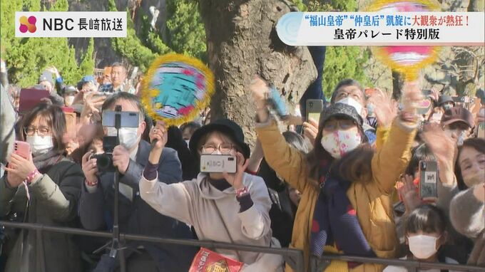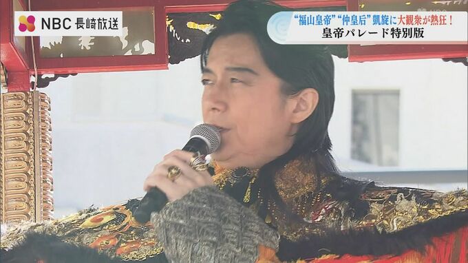 「もっと盛り上がっていただいても構いません」皇帝パレード特別版 皇帝役 福山雅治さんと皇后役 仲里依紗さん 沿道は人…人…人… 長崎ランタンフェスティバル 2024年2月19日(月) 20:19 国内 皇后役・仲里依紗さん: 「すごい、すごい、いぇーい こんにちはー」 沿道の人:「りぃーさちゃーん」