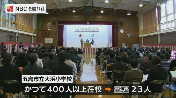 児童数の減少により今年度で閉校する五島市の大浜小学校で閉校記念式典が行われました。