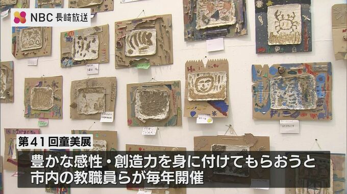 『童美展』は子どもたちに豊かな感性と創造力を身に付けてもらおうと長崎市内の教職員らが毎年開いていて、今回は0歳から小学生までの作品およそ5百点が展示されています。