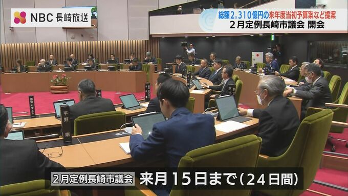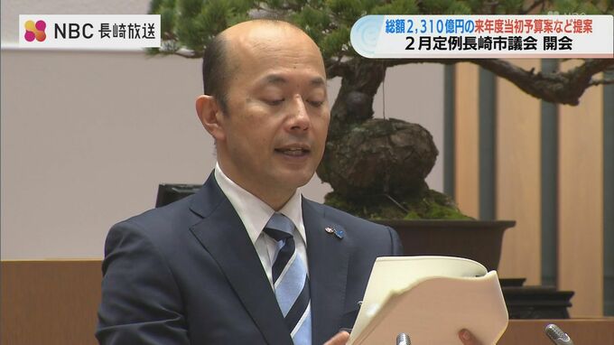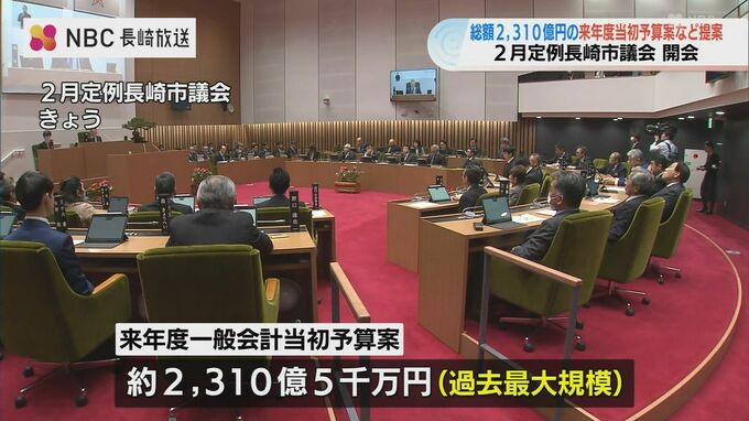 長崎市の2月定例長崎市議会が21日、開会し、人口減少の克服につなげる3つのプロジェクトを柱とした過去最大規模となるおよそ2,310億円あまりの来年度当初予算案が提案されました。