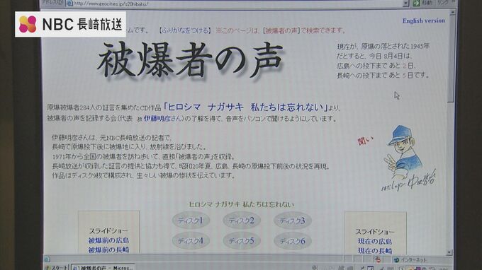 証言は元長崎放送記者のジャーナリスト故伊藤明彦さんが自費で全国各地に住む被爆者2千人を訪ね歩きそのうち1003人から集めたもので、伊藤さんは2006年に284人分の声を編集し8時間40分に及ぶCD作品として発表しました。