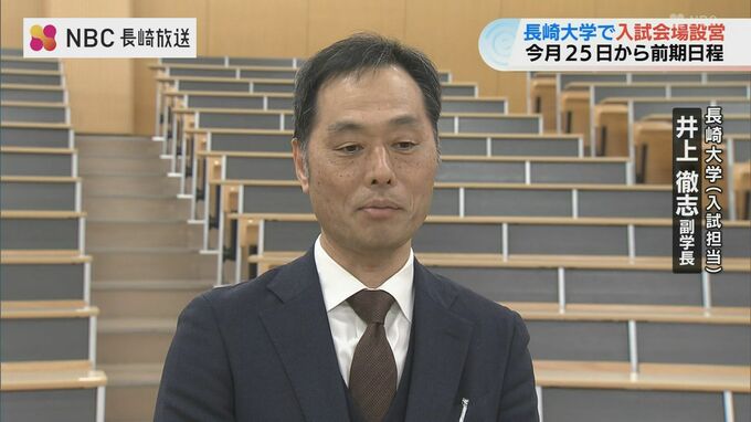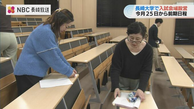 国公立大学の前期日程が今月25日から始まるのを前に、長崎大学では22日、会場設営が行われました。