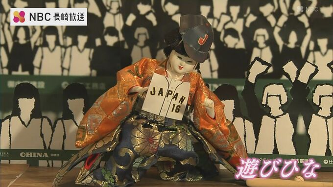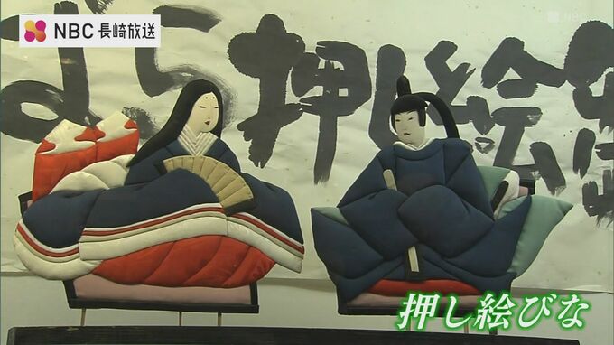 厚紙に端切(はぎ)れを貼り、中に綿を詰めて立体感をもたせた島原伝統のひな人形です。