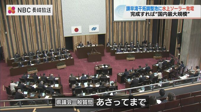 27日の長崎県議会の一般質問で大石賢吾知事は、再生可能エネルギーの活用を進めるため、この場所での水上太陽光発電事業について「導入の可能性も含めて来年度から検討を始め、地元の市や関係団体等と協議を進めていく」考えを示しました。