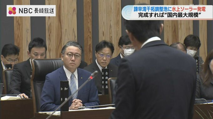 長崎県の大石知事は諫早湾干拓の調整池に水上太陽光発電施設を導入することについて来年度から検討を始めることを表明しました。