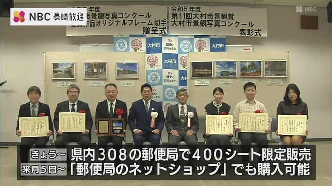 長崎県大村市の美しい景観を捉えた写真コンクールの表彰式が28日行われました。受賞作はオリジナルフレーム切手にも採用され、28日から販売が始まりました。