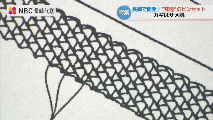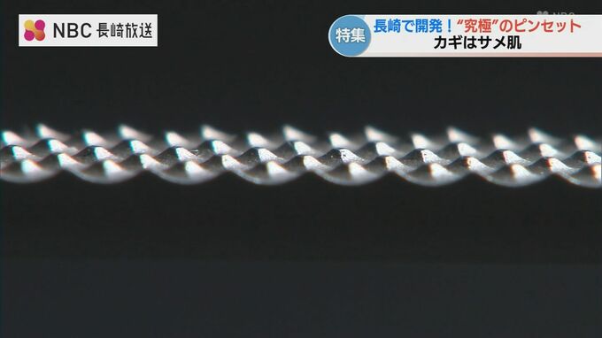 長崎大学では『サメ肌鑷子』という名前を付け開発をスタート。ポイントはサメ肌のような機能を科学的に再現し、それを金属の先端に加工することでした。