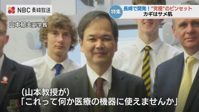「鮫肌はですね、私と一緒に、長年“医工連携”をしてくれている工学部の山本郁夫副学長が『これって何か医療の機器に使えませんか』っていうことだったので、ちょうど私も鑷子のことを考えてたので『鑷子の先端にいいんじゃないですかね』ということで」