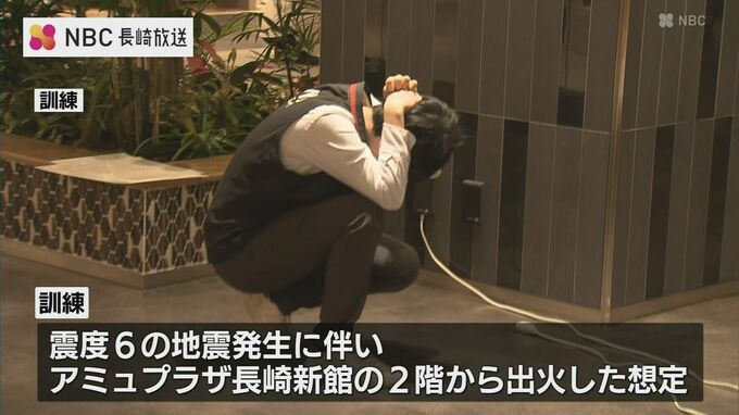 訓練は震度6の地震発生に伴い、アミュプラザ長崎新館の2階から出火した想定で行われました。