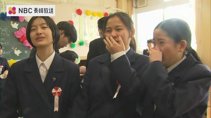 卒業生からは「うれしい気持ち半分、今まで頑張ってきた仲間なのでちょっと悲しい」「クラスのみんなに感謝の気持ちでいっぱい」「離れたくない」などの声が聞かれました。