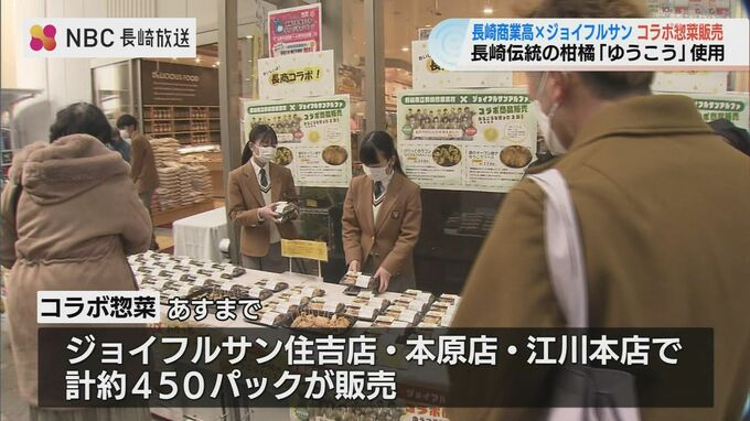 長崎商業高校の生徒が地元スーパーと共同開発した長崎の伝統柑橘「ゆうこう」を使った惣菜が3月20日から2日間限定で販売されています。