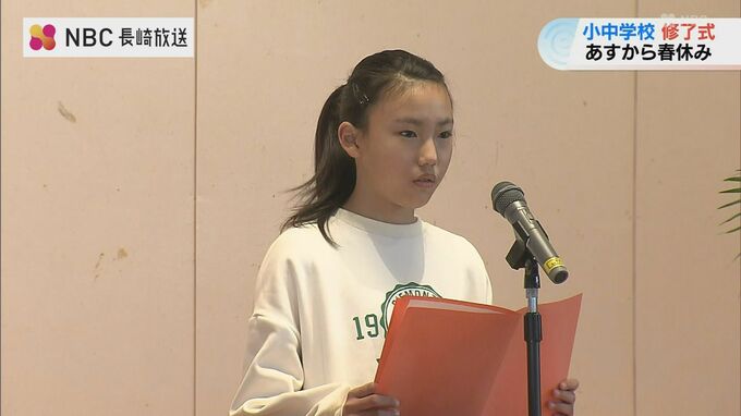 長崎県内のほとんどの小中学校で22日、修了式が行われました。明日から春休みです。
