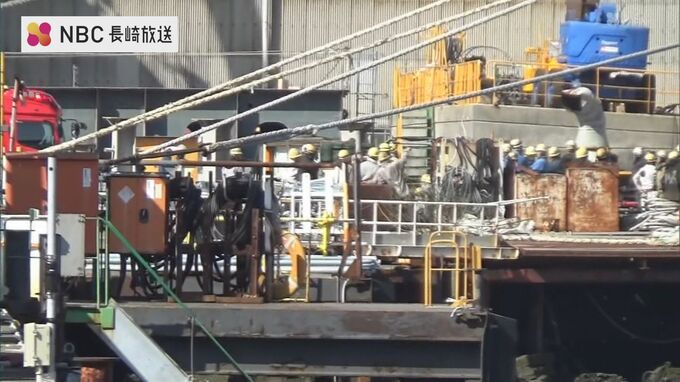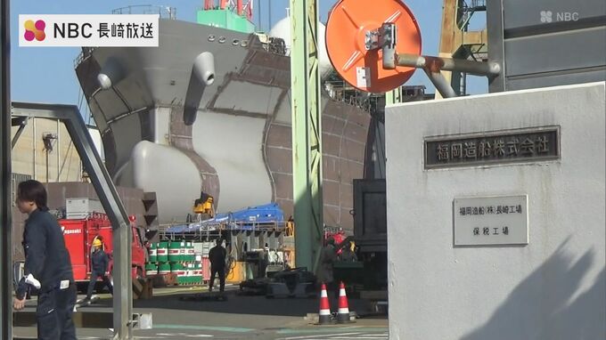 火事があったのは長崎市深堀町1丁目の福岡造船長崎工場で、22日午前9時前「建造船の中が燃えている」と作業員から消防に通報がありました。