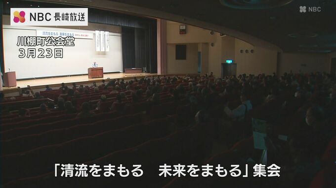 川棚町の公会堂で開かれた集会には、石木ダム建設絶対反対同盟の住民や反対運動を支援する団体の市民らが出席しました。
