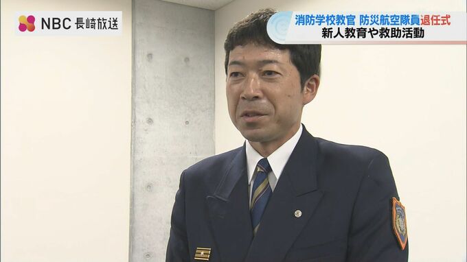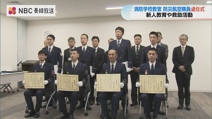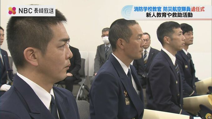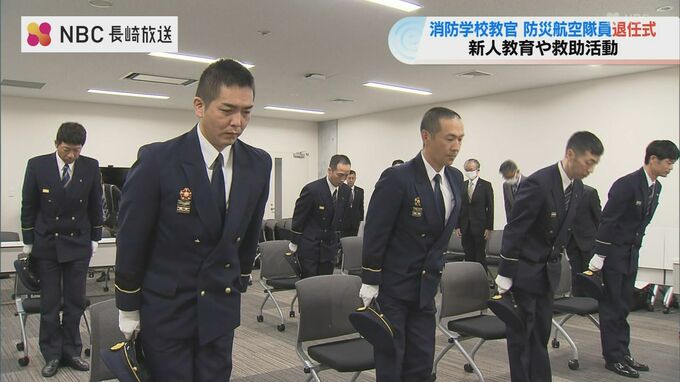 長崎県内の各消防本部から派遣されていた県消防学校の教官と県防災航空隊の隊員の退任式が26日、行われました。
