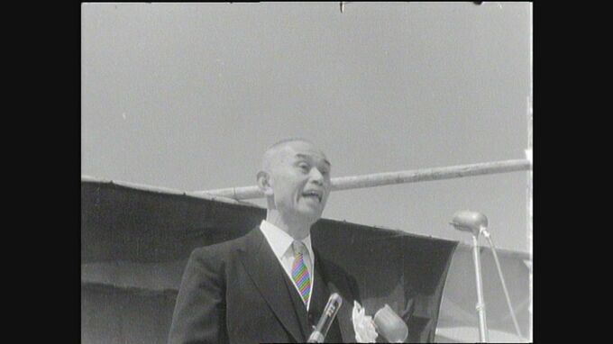 新しい庁舎の屋上では当時の田川市長や佐藤知事ら1,500人が出席して、落成式が開かれました。